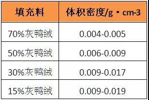 灰鴨絨填充料的體積密度表