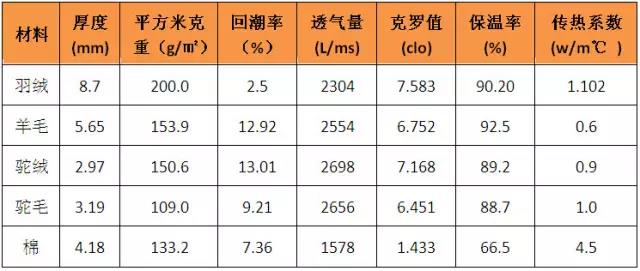 可見,在天然保暖材料中,保暖性最好的當數(shù)羽絨,其次是駝絨,再往后依次是羊毛、駝毛和棉花。