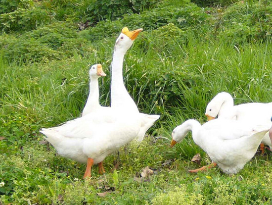 鵝的飼料以植物性為主,一般的野草和水生植物都可供鵝食用。故鵝絨油脂含量少,幾乎沒有異味。